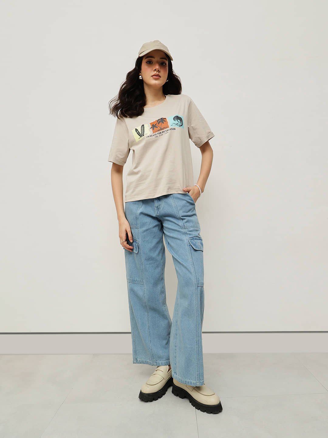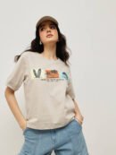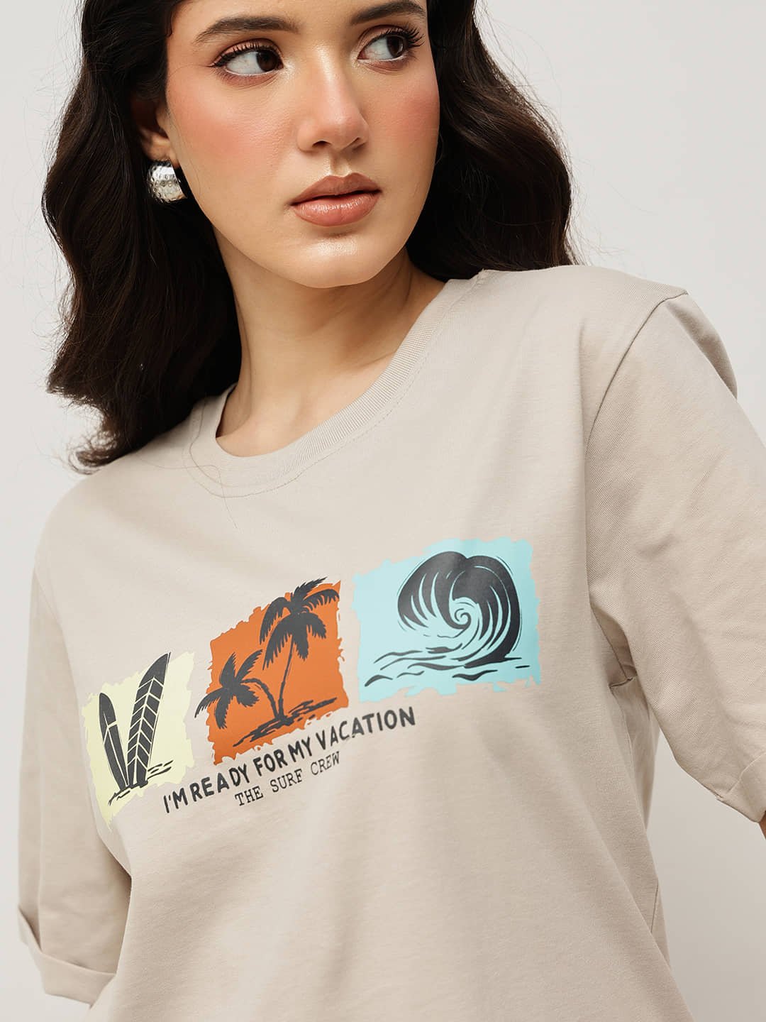 Crafted from 100% Fine Cotton and treated with a refined bio-silicon wash, this cropped boyfriend-fit tee feels luxuriously soft and effortlessly light. The vibrant “Vacation Mood” tropical graphic captures the spirit of sunshine and surf — a must-have for your casual getaway wardrobe.