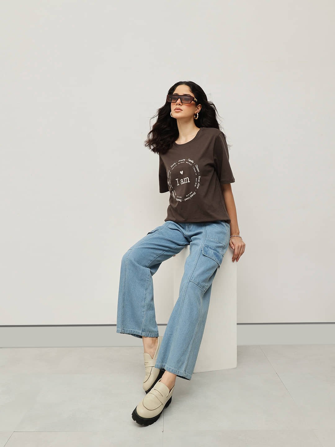 Crafted from 100% Fine Cotton and enriched with a smooth bio-silicon wash, this cropped boyfriend-fit tee offers superior softness and everyday comfort. The empowering “I Am” affirmation print celebrates confidence and positivity — making it the perfect blend of comfort and self-expression.