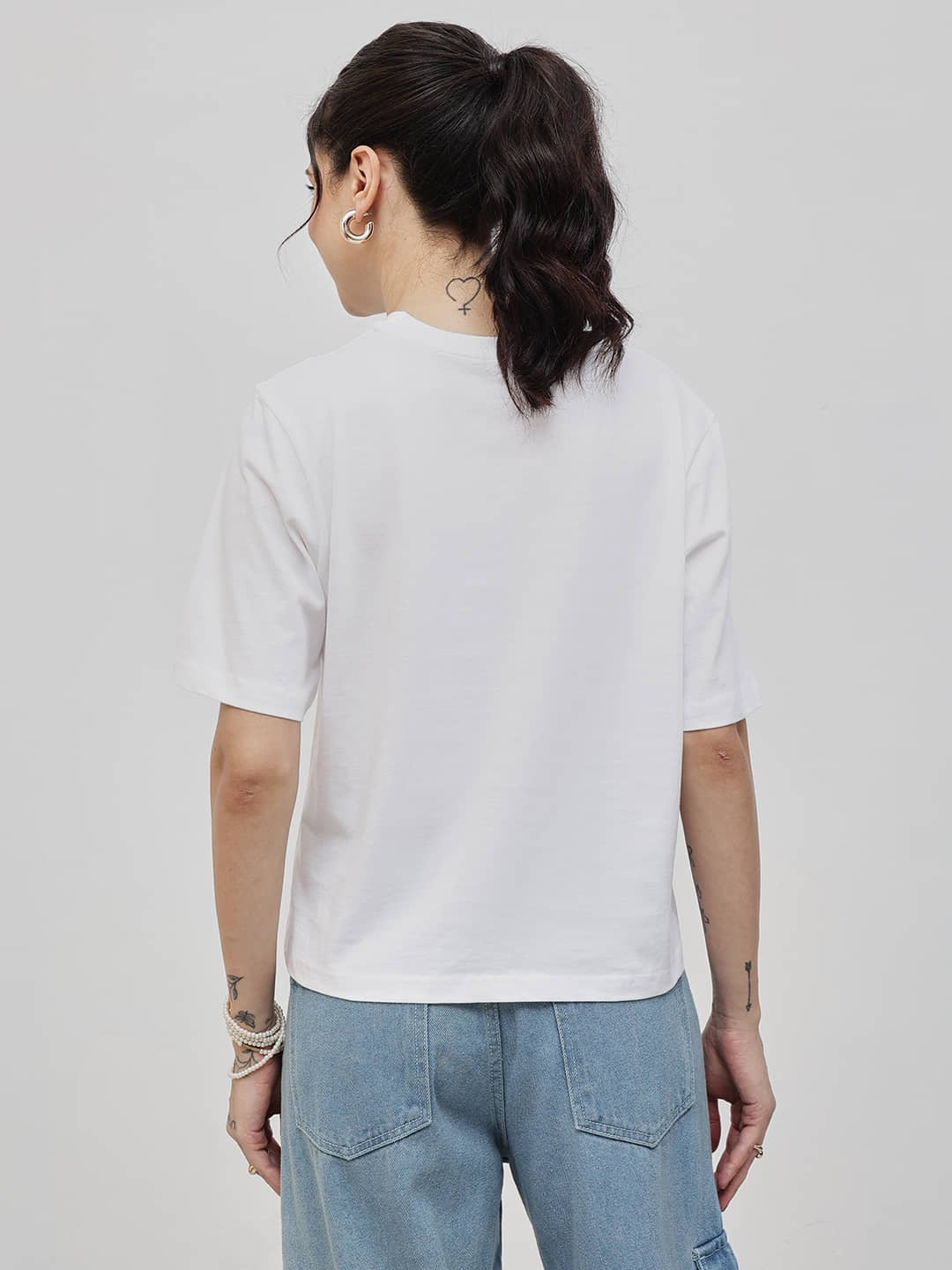 - Pair with denim cargo pants or shorts for a street-chic look. Add a bold lip and sneakers to complete the confident, playful outfit.