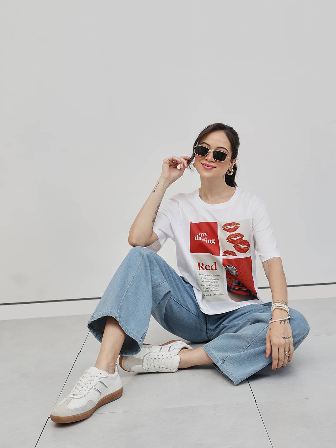 - Striking “My Darling Red” graphic print for a bold, confident vibe