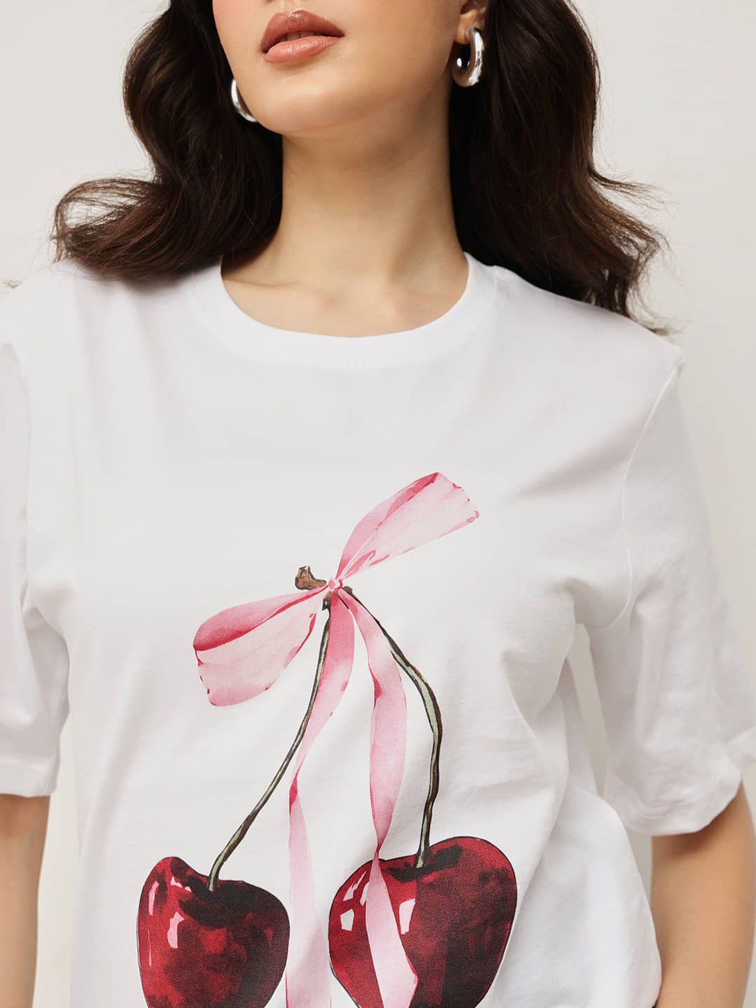 Crafted from 100% Fine Cotton and enhanced with a refined bio-silicon wash, this relaxed boyfriend-fit tee feels incredibly soft and luxuriously smooth. The charming “Chérie” cherry print with a delicate pink ribbon adds a playful yet elegant touch — perfect for days that call for fresh, feminine ease.