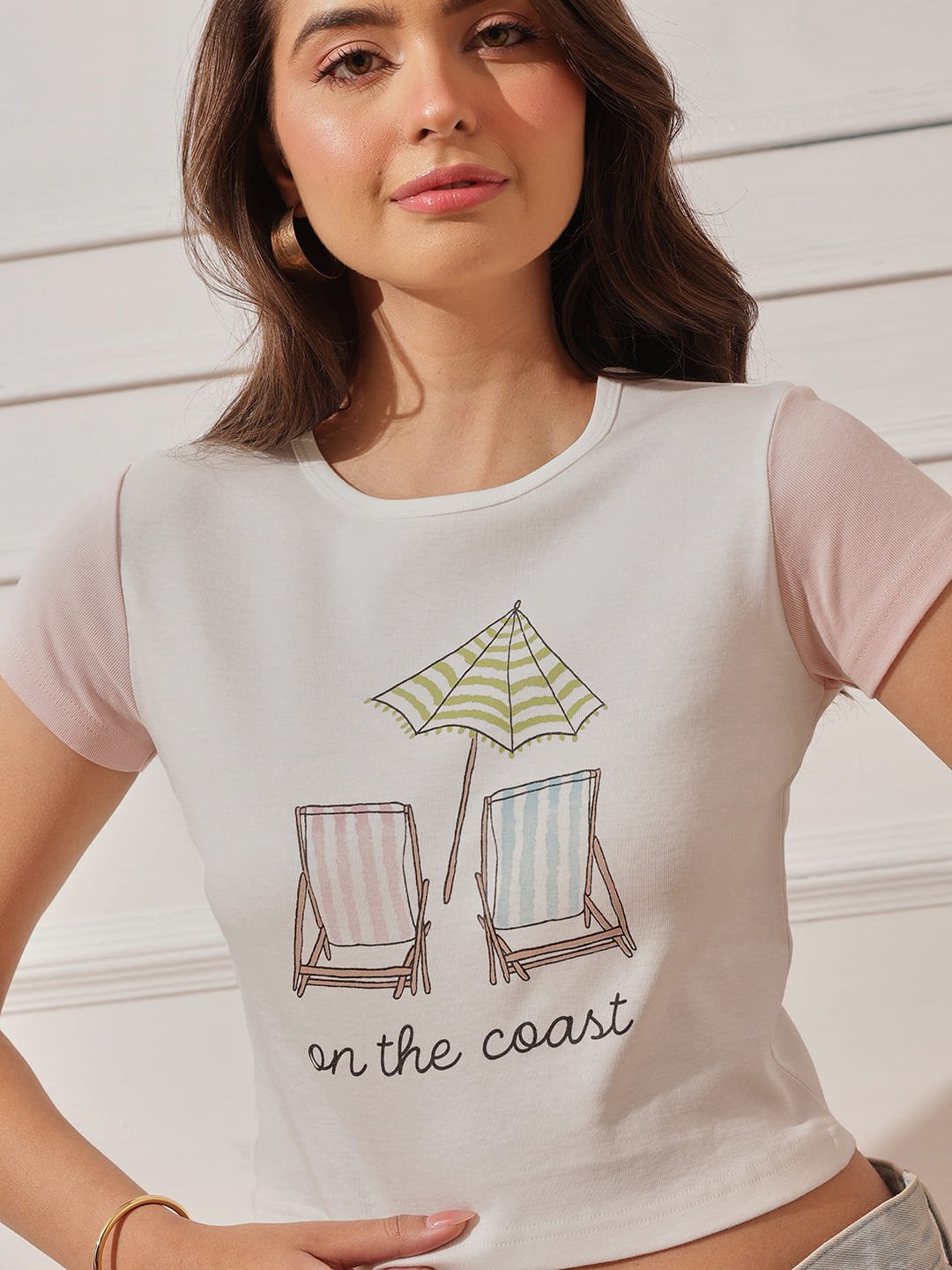 Made from 100% Fine Cotton and finished with a gentle bio-silicon wash, this raglan crop top captures the essence of easy coastal style. Featuring a calm coastal-themed graphic, this style blends effortlessly into everyday outfits, travel wardrobes, and casual fits.