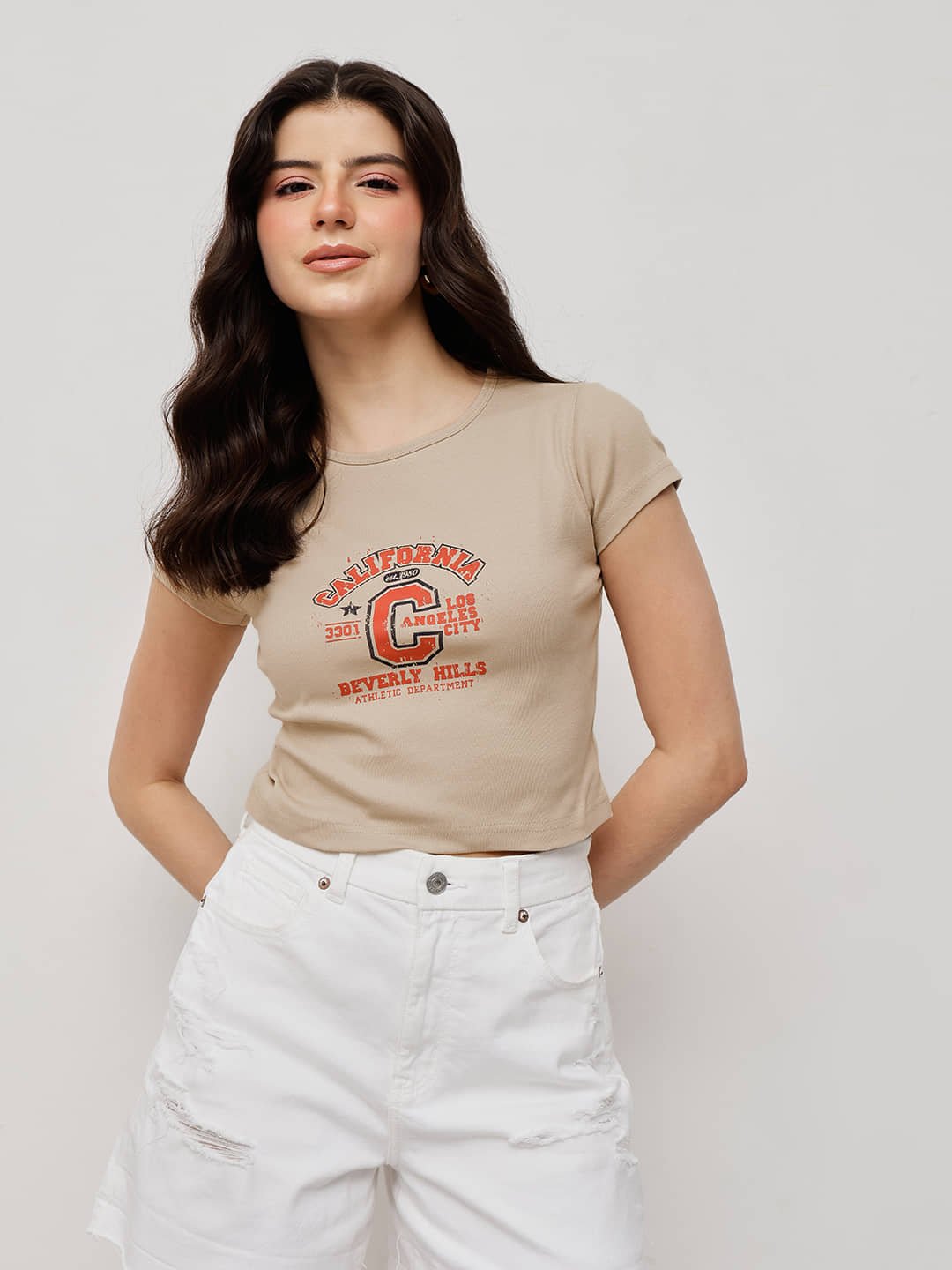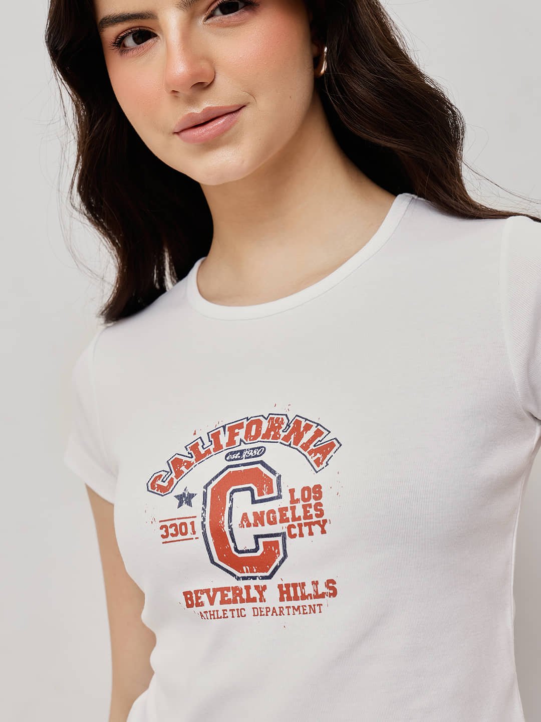 Tailored from 100% Fine Cotton and finished with a soft bio-silicon wash, this ribbed crop top channels sporty California energy with feminine ease. The “Beverly Hills” graphic and varsity-inspired emblem bring a touch of West Coast spirit to your everyday look — fresh, youthful, and effortlessly chic.