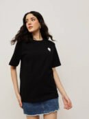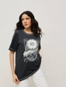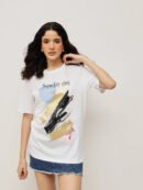 Women 100% Cotton Boy Friend Relaxed Fit Printed T.Shirt