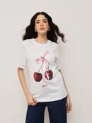 Women 100% Cotton Boy Friend Relaxed Fit Printed Crop Length Tshirt